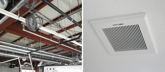 新築建物や既存建物の冷暖房設備・換気設備を承ります。 業務用エアコン・店舗用エアコン・設備エアコン・換気扇・全熱交換器・ファンの設置及び交換、冷媒配管工事・ダクト配管工事などの施工を承ります。