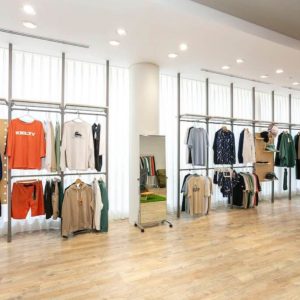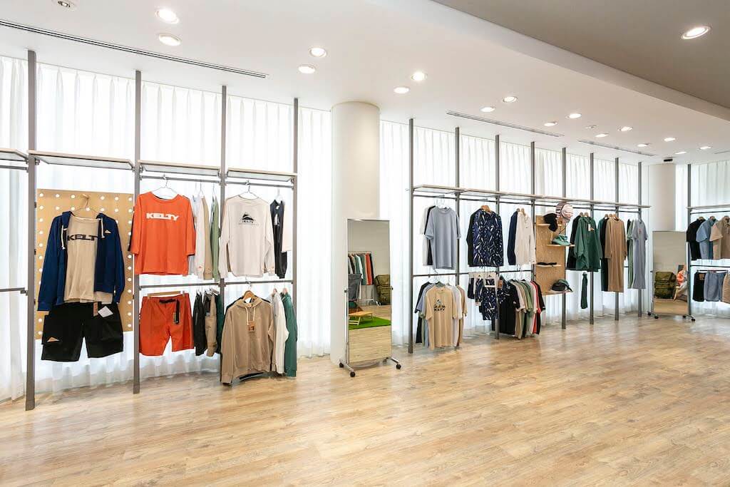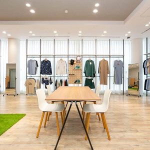 株式会社福岡 明るくシンプルなショールーム 株式会社福岡は、カジュアルウェアーを素材から提案し、生産管理、納品まで一貫して行う繊維専門商社です。 今回、同社の契約ライセンスブランドのアパレルブランドショールームのデザインをお任せいただきました。 アウトドアグッズなどのレイアウトを自由に変更できるよう、什器は壁面のみに配置し、商品の陳列内容にあわせて利用できるように工夫いたしました。また、商品の色あいが目立つように、シンプルで落ち着きのある色づかいで全体をまとめております。 ヘアサロンFUKUOKA Personal Gym Fukuoka