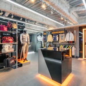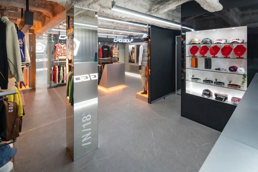 ワールドゴルフ福岡 次世代のゴルフウェアブランドショップ さりげなくコースで人目を惹きつける、そんなスタイリッシュなゴルフライフを提案を。 2021年秋冬コレクションより立ち上がったゴルフウェアショップをお任せいただきました。 機能的であり着心地がよくハイエンドに輝きを放つデザイン性の各種コレクションが揃っています。 そんなブランドの一号店舗ということで、スタイリッシュなブランドイメージをシルバーとブラックの空間で表現し、アクセントにオレンジの光を取り入れデザインいたしました。また、壁面上部にはL型に動く電光掲示板を設置することでストリートのエッセンスを取り入れております。 福岡市博多区の老舗うなぎ屋 PLUS FUKUOKA